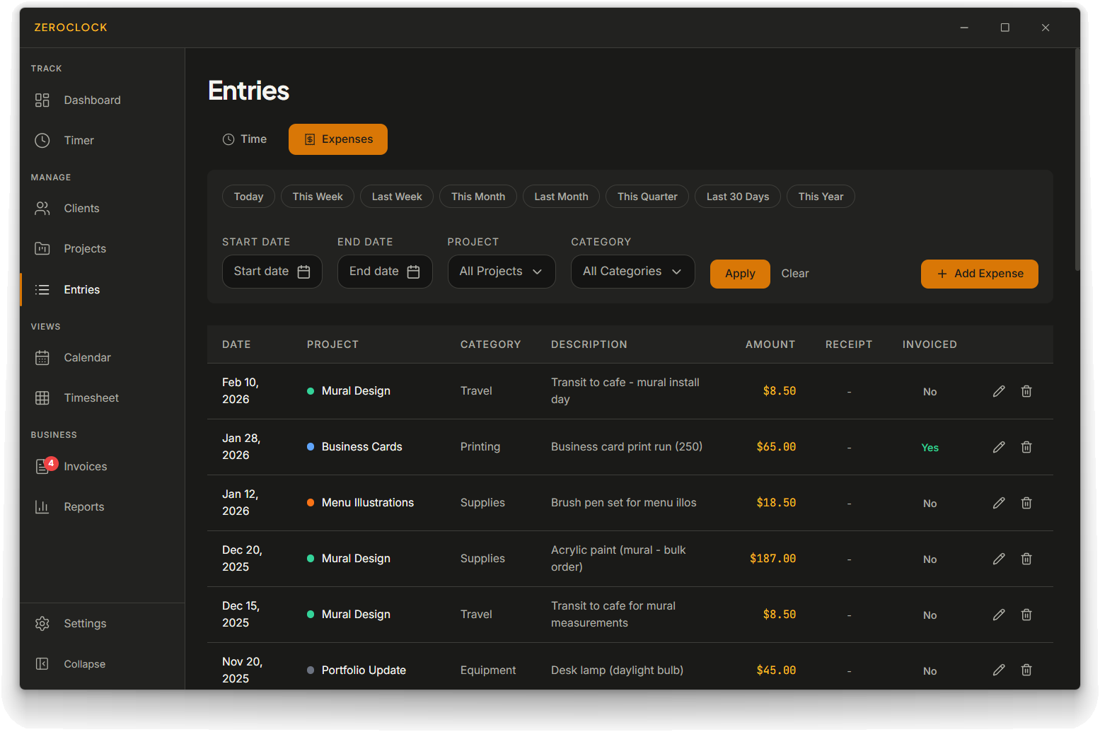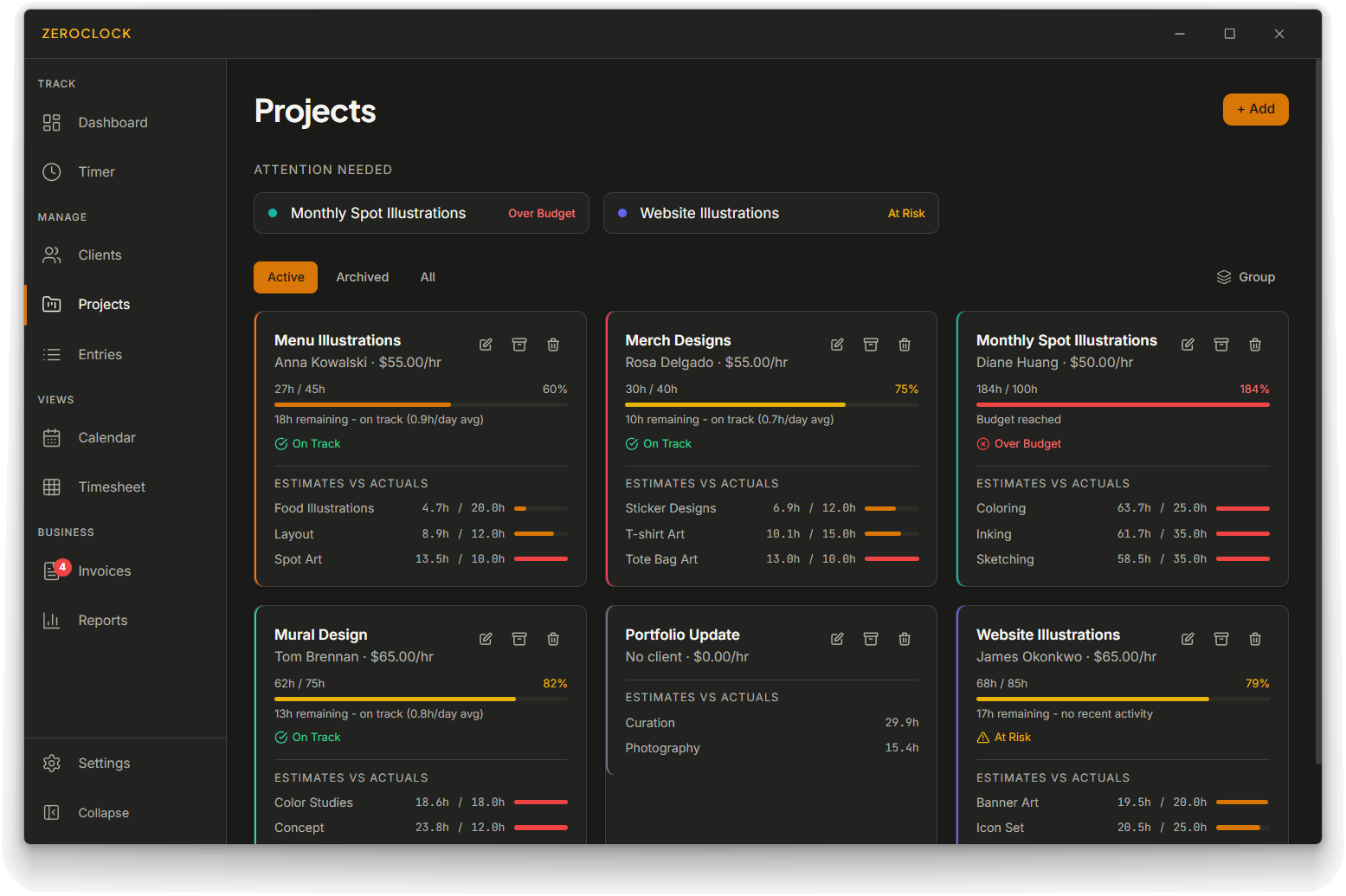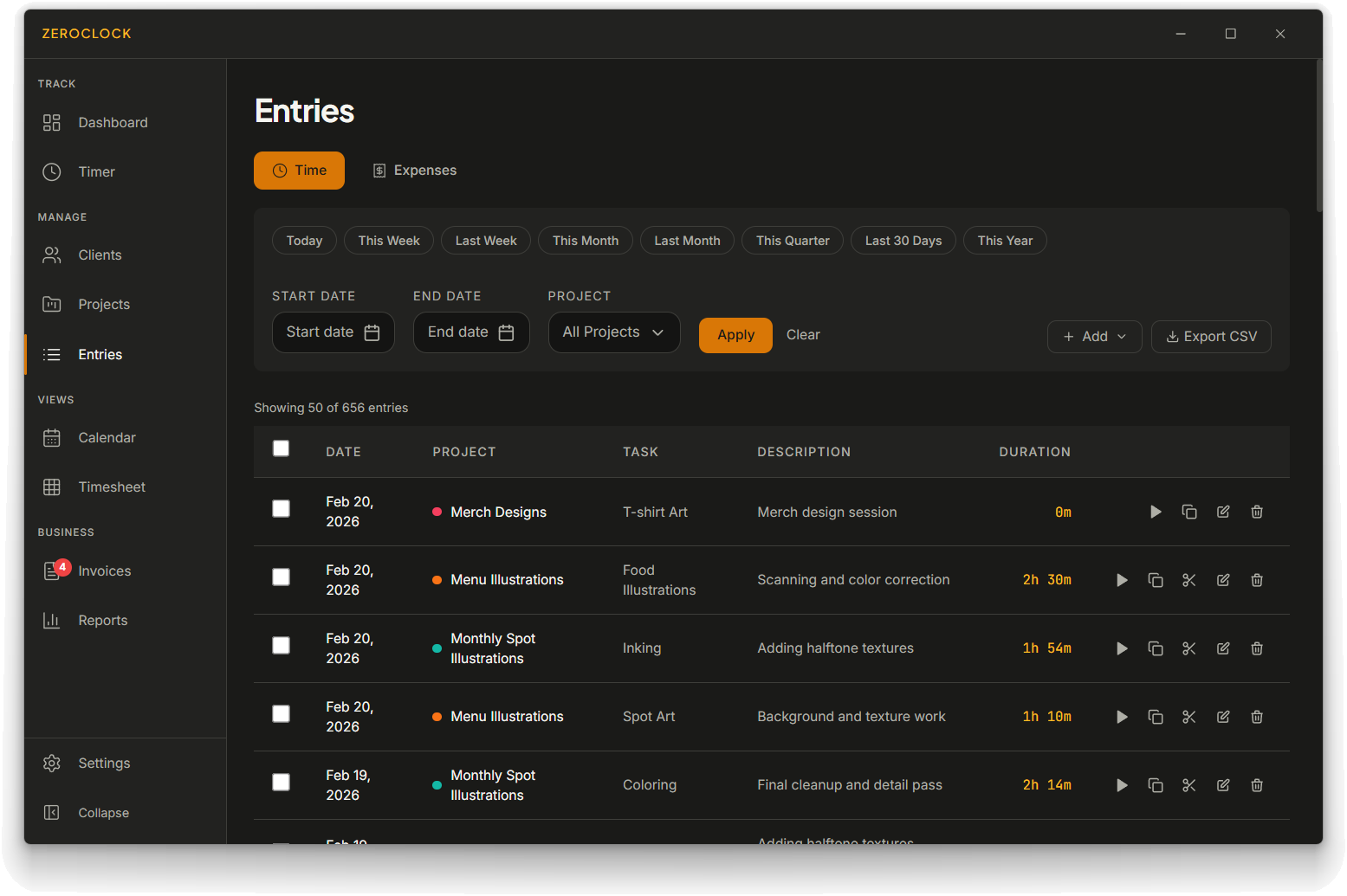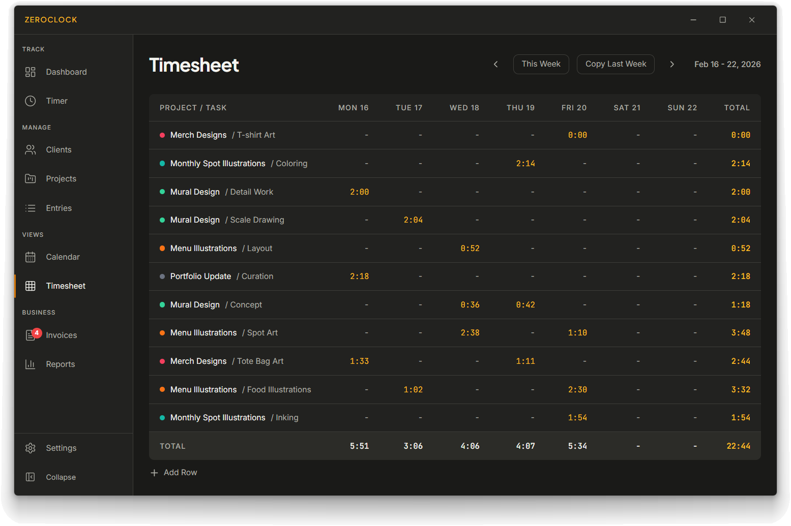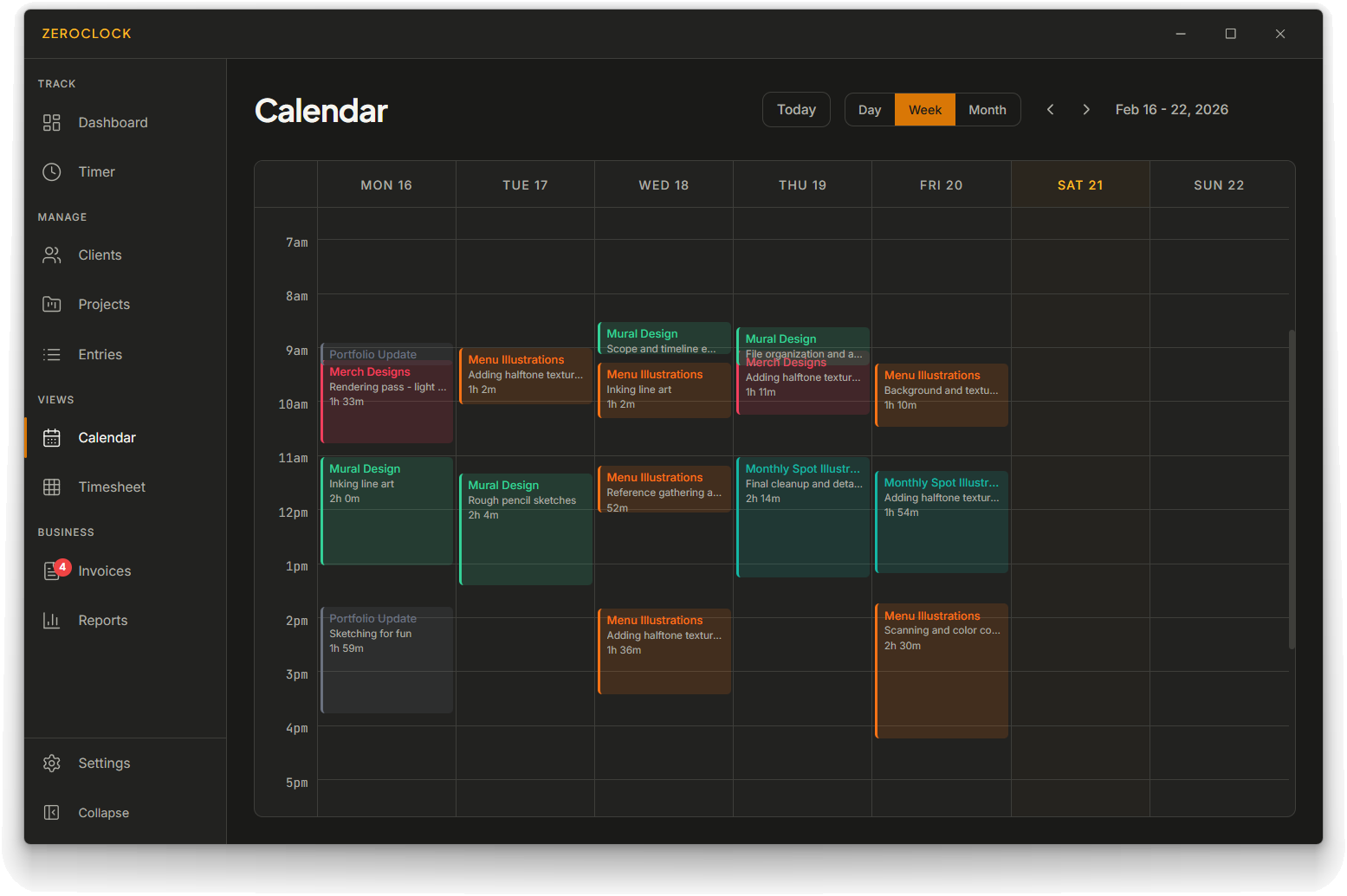 Time tracking should be simple, private, and free. ZeroClock stays out of the way so you can focus on the work that actually pays.